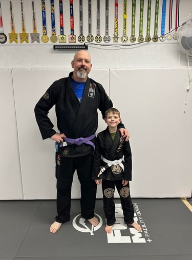 Clean and safe training environment is one of our top priorities! Over 1k sqft of mat space and four changing booths as well as a bathroom. All upstairs for a convenient transition to class without distractions.